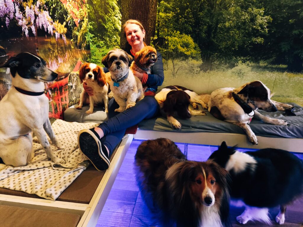 Somos pioneiras em utilizar esse instrumento como uma ferramenta para o estímulo auditivo e desenvolvimento sensorial dos cães dentro de uma creche.